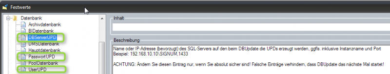 - PasswortUPD: Passwort, für die Anmeldung von DBUpdate am SQL Server, um die UPDs zu erzeugen