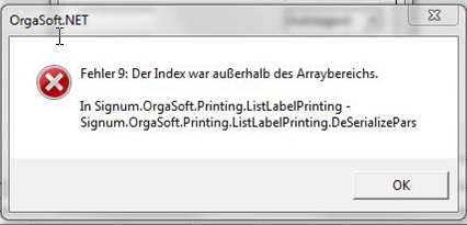 Seit einem Orgasoft-Releasewechsel erhalte ich beim Druck von Listen eine Fehlermeldung "Der Index war außerhalb des Arrybereichs"