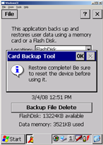- Nach erfolgreichem Abschluss der Wiederherstellung erscheint ein Hinweis, dass an dem gerät ein reset durchgeführt werden muss, bevor man damit arbeitet. An dieser Stelle klicken Sie zunächst auf OK und betätigen danach den Reset-Knopf an der Rückseite des MDEs (der mobilen Kasse)