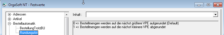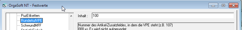 Für die Berechnung der Bestellmengen in der Bestellautomatik ist nicht nur der Bestand eines Artikels, dessen Maximalbestand, sowie offene Bestellungen, etc., verantwortlich, sondern auch die Festwerte "RundeAufVPE" und "InterneVPE" sowie der Festwert "Rundungsart". So kann beispielsweise auch gesteuert werden, wenn der Lieferant Mindestabnahmemengen vorschreibt.