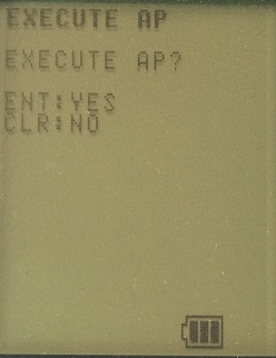 Sie können jetzt versuchen ohne Formatierung des Datenspeichers aus dem Bereich "Execute AP" herauszukommen in dem Sie mit der Taste ENT bestätigen. Landen Sie daraufhin nicht direkt im Signum-Menü sondern wieder im Casio System-Menü, wählen Sie den Menüpunkt 1=Execute AP zum verlassen des System-Menüs, das SIGNUM MDE Menü sollte jetzt starten.