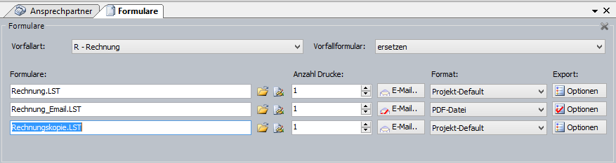 Ist zusätzlich die Archivierung eingeschaltet, muss darauf geachtet werden, dass der Emailversand mit dem Anhang (PDF, csv, etc.) nicht an erster Stelle der Formulare steht, da die Archivierung nur mit LL-Dateien arbeitet und dann wäre im Anhang der Email die Datei immer im LL-Format.