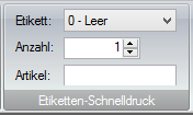 Bei einem Artikel-Etikett geben Sie die gewünschte Druckmenge ein. Bei einem Regal-Etikett wird die Anzahl der definierten Etiketten des Artikels der ausgewählten Filiale (oben rechts) genommen. Beim Etiketten-Schnelldruck wird bei Eingabe der Artikelnummer generell die Standardeinheit (ggfs. mit Farbe 0 und Größe NULL) gedruckt.