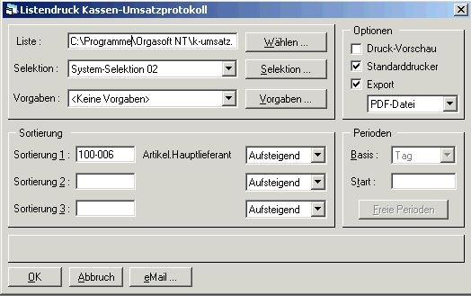 Listen (z.B. das tägliche Kassenumsatzprotokoll) können automatisch per Scheduler gedruckt und dann als eMail verschickt werden.